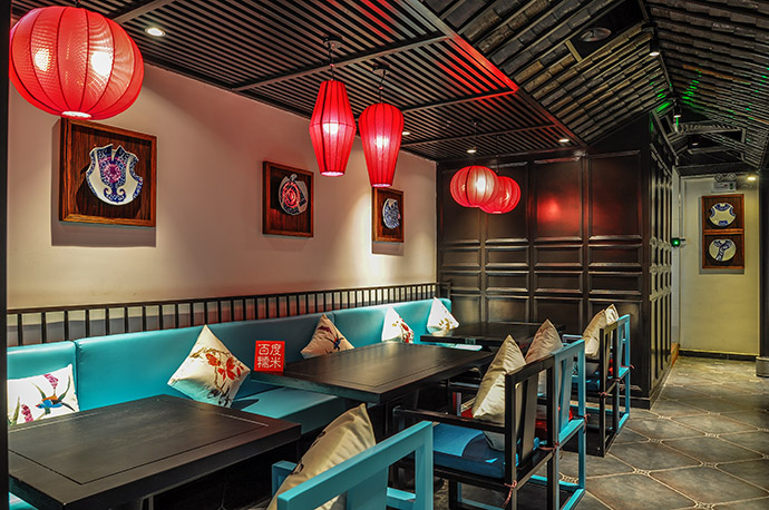 有了識別度高的平面形象,我們更要有強烈的有鮮明的主題風格,或清新、或時尚歡快的空間裝飾,所以在空間設計上,我們充分依托中式風和蘇繡元素。