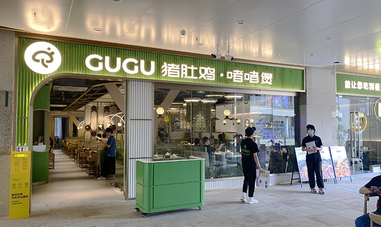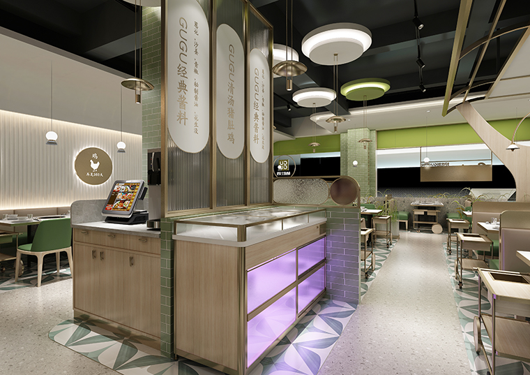 廣式火鍋因其健康養(yǎng)生、清淡滋補(bǔ)營(yíng)養(yǎng)好而深受各地消費(fèi)者的喜愛(ài)和追捧。除了傳統(tǒng)的潮汕鮮切牛肉火鍋,椰子雞、豬肚雞也是目前廣式火鍋中非常熱門的餐飲品類。深圳椰子雞火鍋連鎖品牌——江南春天椰子雞餐廳就非常看好豬肚雞這一品類,該連鎖餐廳旗下豬肚雞火鍋品牌——咕咕豬肚雞,將傳統(tǒng)的濃湯豬肚雞升級(jí)為清湯豬肚雞,湯底更加清淳,味道鮮香還甜美,相比傳統(tǒng)豬肚雞,養(yǎng)生滋補(bǔ)功效很明顯。咕咕豬肚雞餐廳在產(chǎn)品上還加入了粵菜經(jīng)典細(xì)分品類——啫啫煲,這也是粵菜中非常熱門的品類。與豬肚雞火鍋搭配,豐富了產(chǎn)品線,市場(chǎng)競(jìng)爭(zhēng)優(yōu)勢(shì)比較顯著。此次咕咕豬肚雞啫啫煲餐廳經(jīng)過(guò)認(rèn)真考察分析比對(duì)后委托品深餐飲設(shè)計(jì)負(fù)責(zé)咕咕豬肚雞啫啫煲大浪商業(yè)中心后浪新天地店的空間裝飾設(shè)計(jì)。