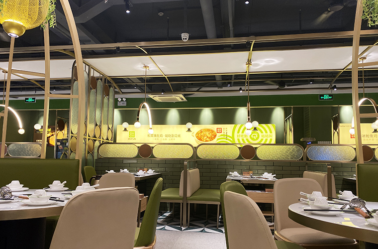 2、用裝飾材料特性表現(xiàn)豬肚雞菜品的核心特征,打造出時(shí)尚清新,通透舒適的空間感受。